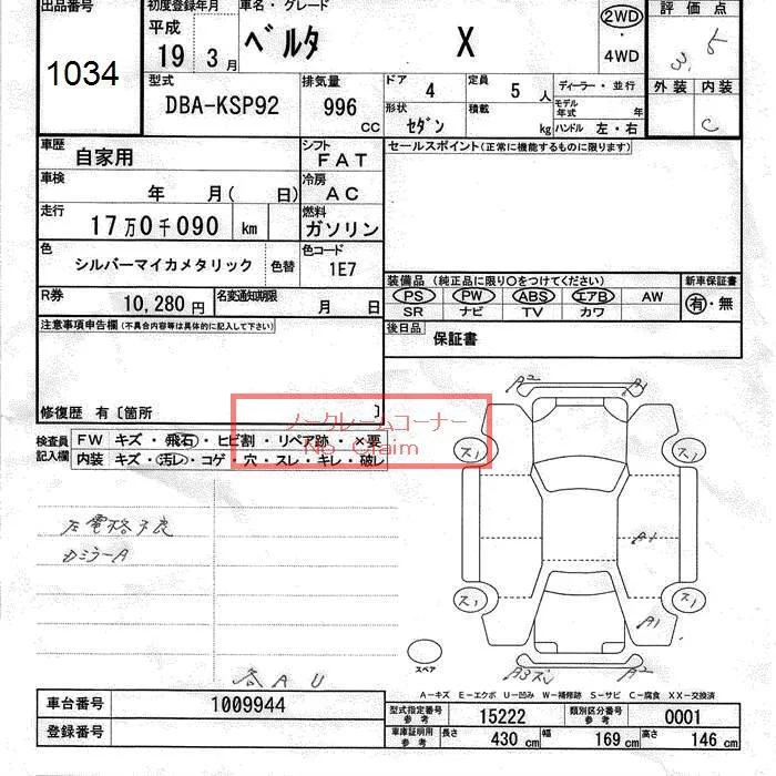 Toyota BELTA с аукциона Японии JU Toyama лот № 1034