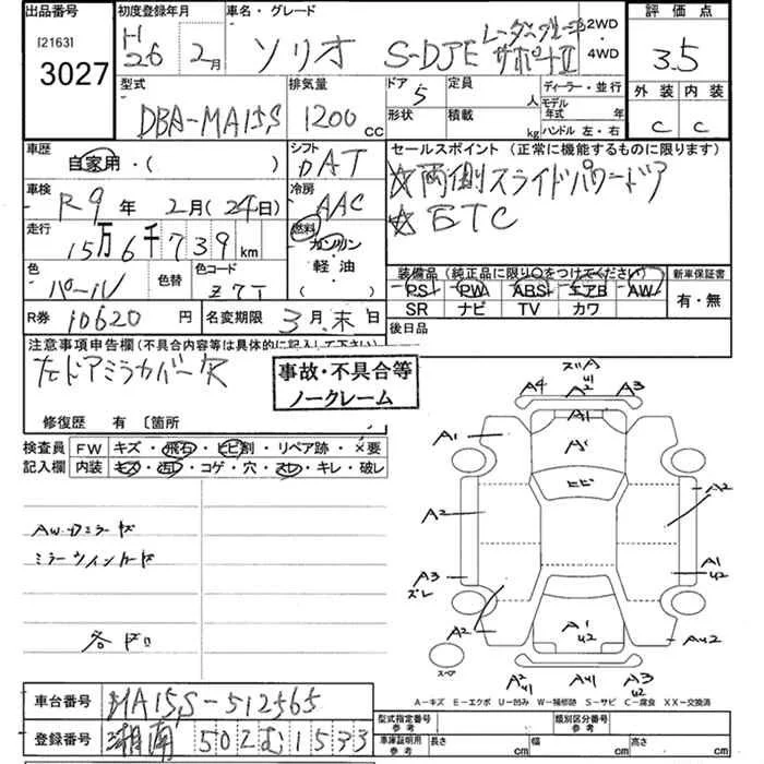 Suzuki SOLIO с аукциона Японии JU Kanagawa лот № 3027