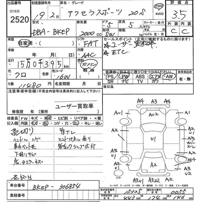 Mazda AXELA с аукциона Японии JU Kanagawa лот № 2520