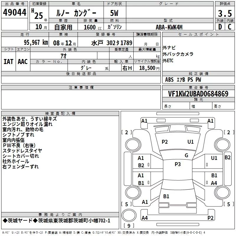 Renault KANGOO с аукциона Японии TAA Kanto лот № 49044
