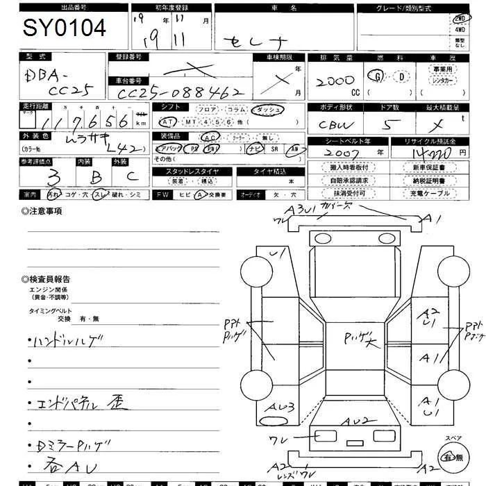 Nissan SERENA с аукциона Японии ZERO Shonan лот № 104