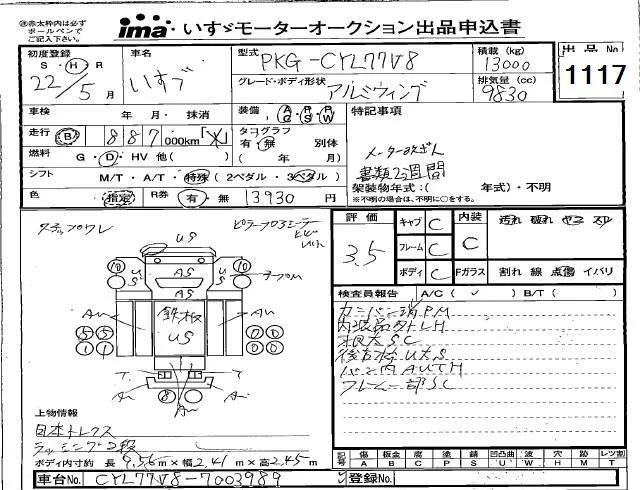 Isuzu TRUCK с аукциона Японии Isuzu Kyushu лот № 1117