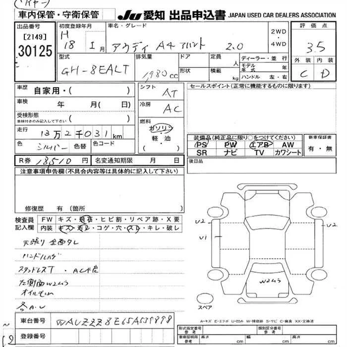 Audi A4 с аукциона Японии JU Aichi лот № 30125