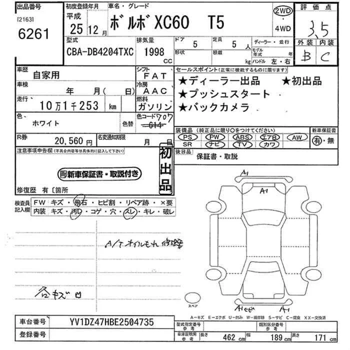 Volvo XC60 с аукциона Японии JU Kanagawa лот № 6261
