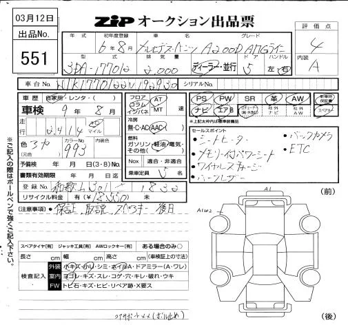 Mercedes-Benz A CLASS с аукциона Японии ZIP Osaka лот № 551