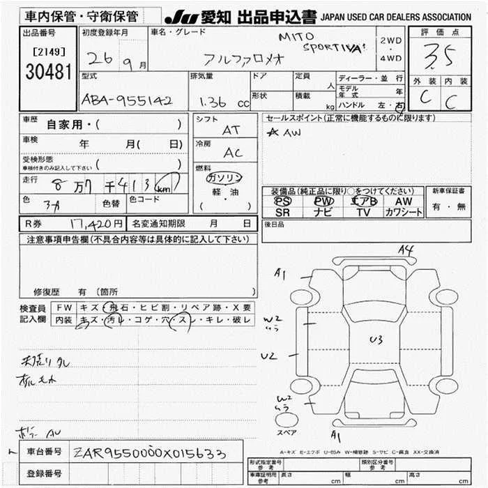 Alfa Romeo MiTo с аукциона Японии JU Aichi лот № 30481