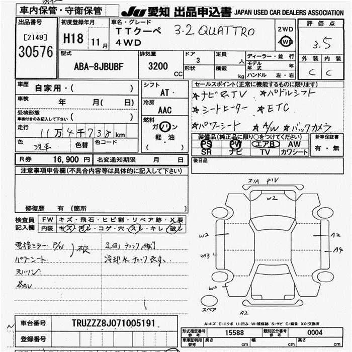 Audi TT с аукциона Японии JU Aichi лот № 30576