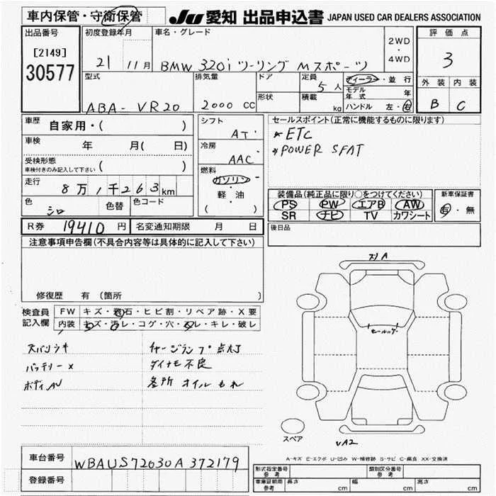 BMW 3-Series с аукциона Японии JU Aichi лот № 30577