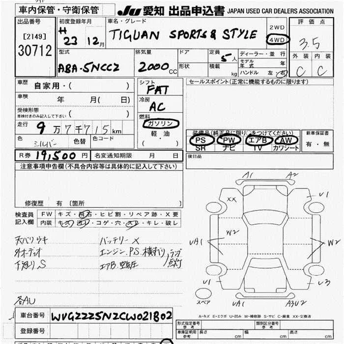 Volkswagen TIGUAN с аукциона Японии JU Aichi лот № 30712