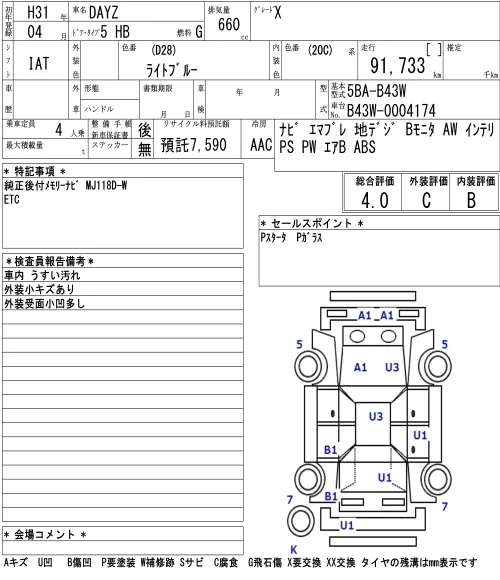 Nissan DAYZ с аукциона Японии NAA Osaka лот № 3009