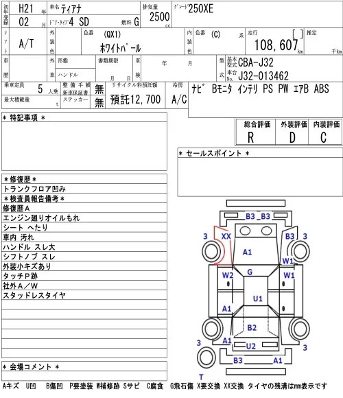 Nissan TEANA с аукциона Японии NAA Osaka лот № 5047