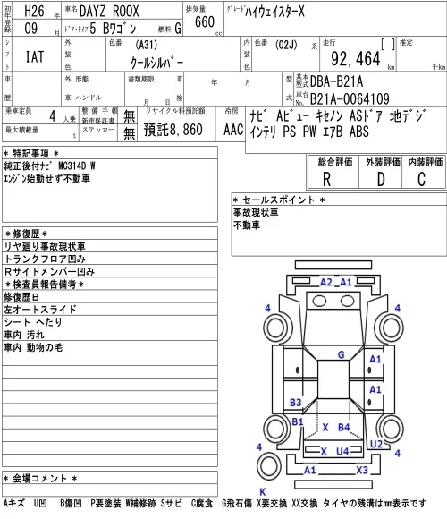 Nissan DAYZ ROOX с аукциона Японии NAA Osaka лот № 8004