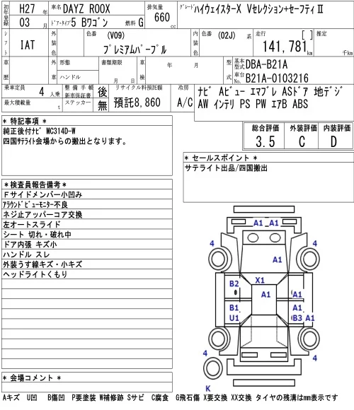 Nissan DAYZ ROOX с аукциона Японии NAA Osaka лот № 6721
