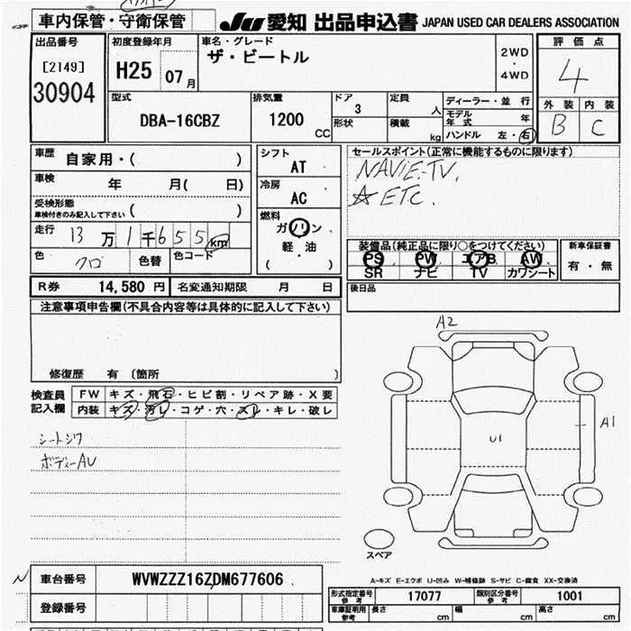 Volkswagen THE BEETLE с аукциона Японии JU Aichi лот № 30904
