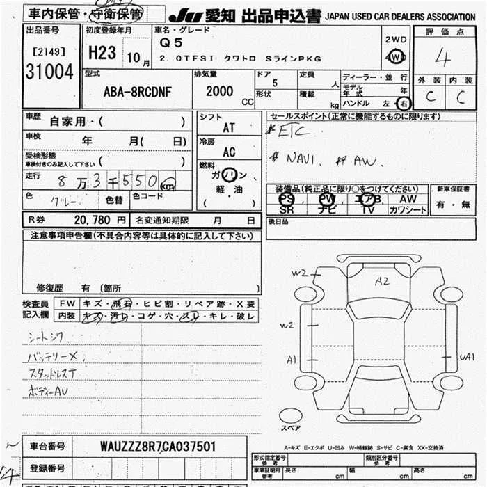 Audi Q5 с аукциона Японии JU Aichi лот № 31004