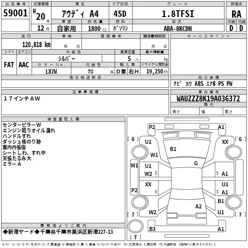 Audi A4 с аукциона Японии TAA Kanto лот № 59001
