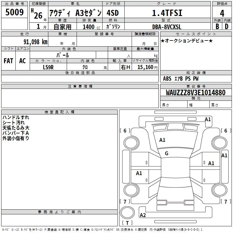 Audi A3 с аукциона Японии TAA Chubu лот № 5009