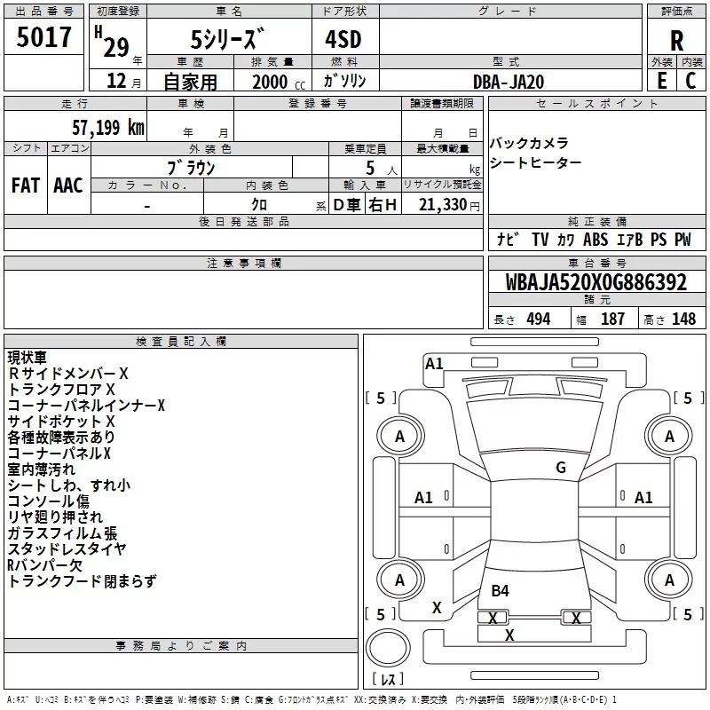 BMW 5-Series с аукциона Японии TAA Chubu лот № 5017