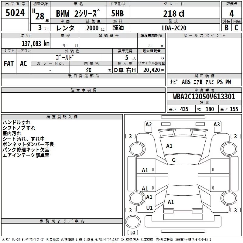 BMW 2-Series с аукциона Японии TAA Chubu лот № 5024