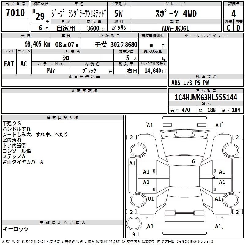 Chrysler JEEP WRANGLER с аукциона Японии TAA Kanto лот № 7010