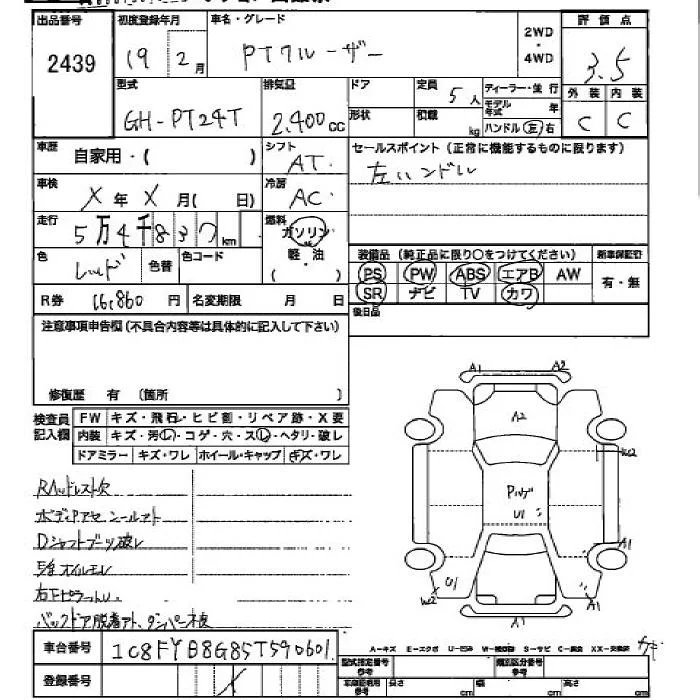 Chrysler PT Cruiser с аукциона Японии JU Hiroshima лот № 2439