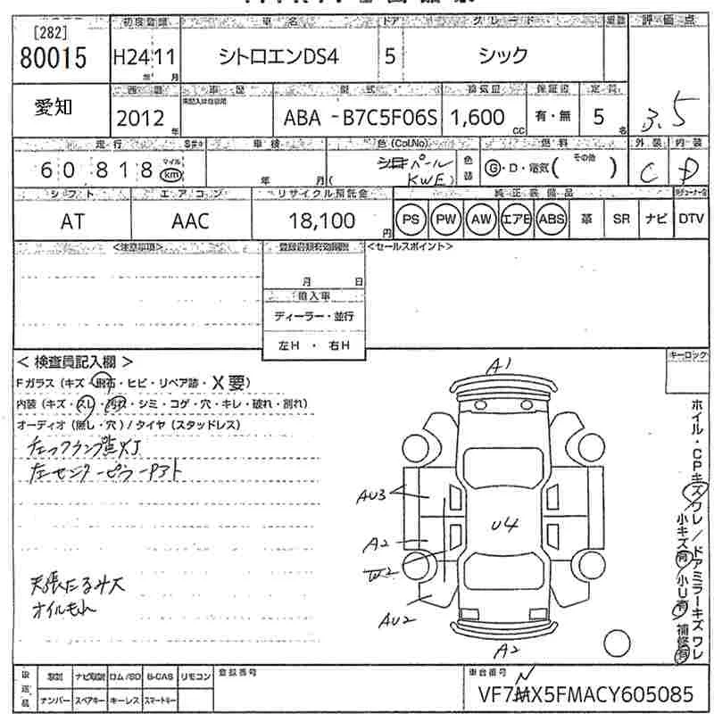 Citroen DS4 с аукциона Японии MIRIVE Aichi лот № 80015