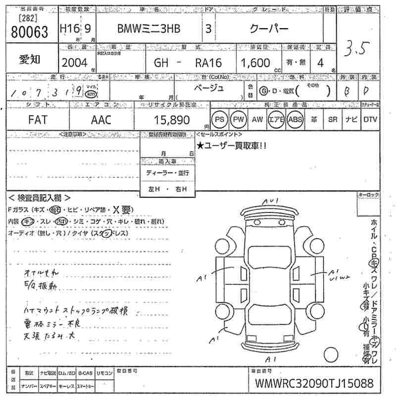 BMW MINI с аукциона Японии MIRIVE Aichi лот № 80063