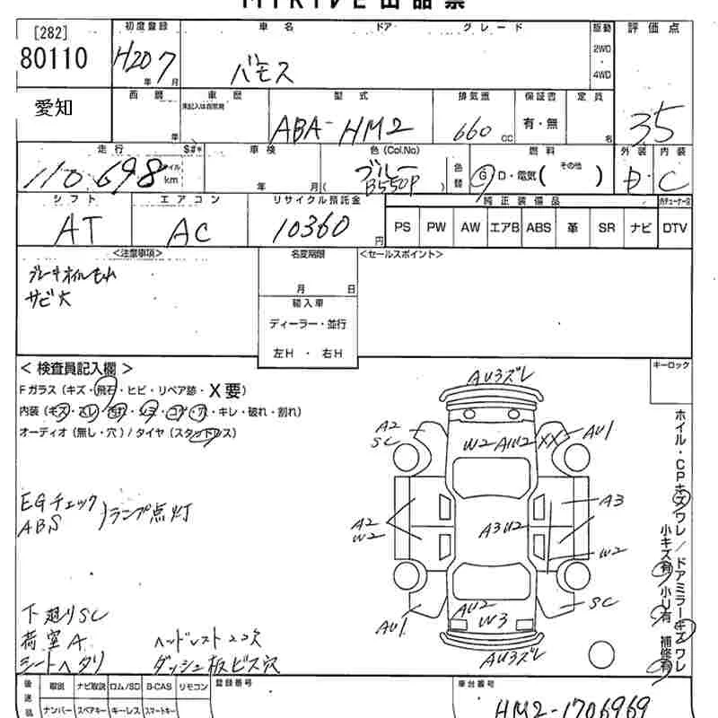 Honda VAMOS с аукциона Японии MIRIVE Aichi лот № 80110