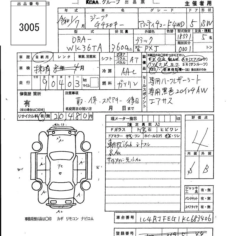 Chrysler JEEP GRAND CHEROKEE с аукциона Японии KCAA Yamaguchi лот № 3005