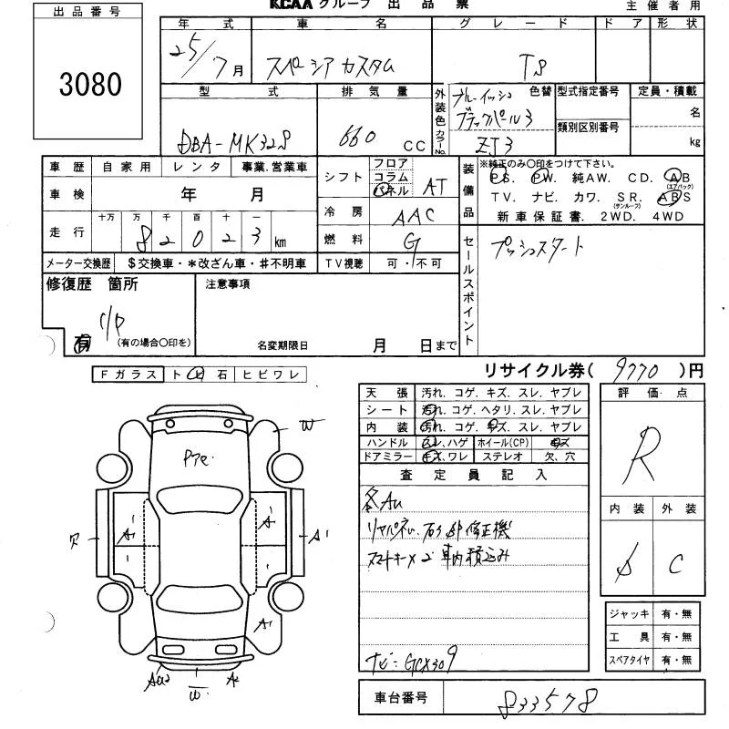 Suzuki SPACIA с аукциона Японии KCAA Yamaguchi лот № 3080