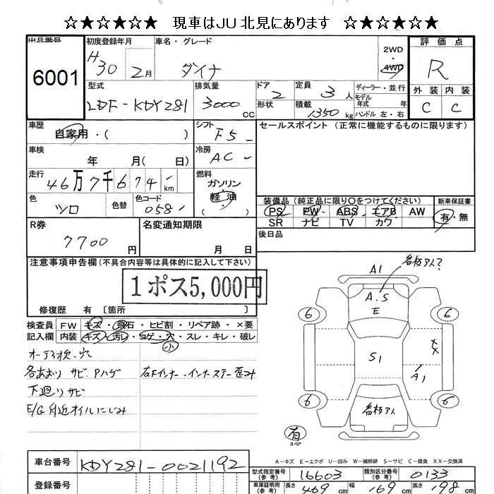 Toyota DYNA с аукциона Японии JU Hokkaido лот № 6001