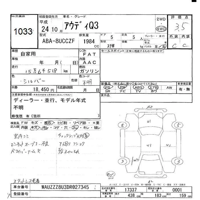 Audi Q3 с аукциона Японии JU Hokkaido лот № 1033