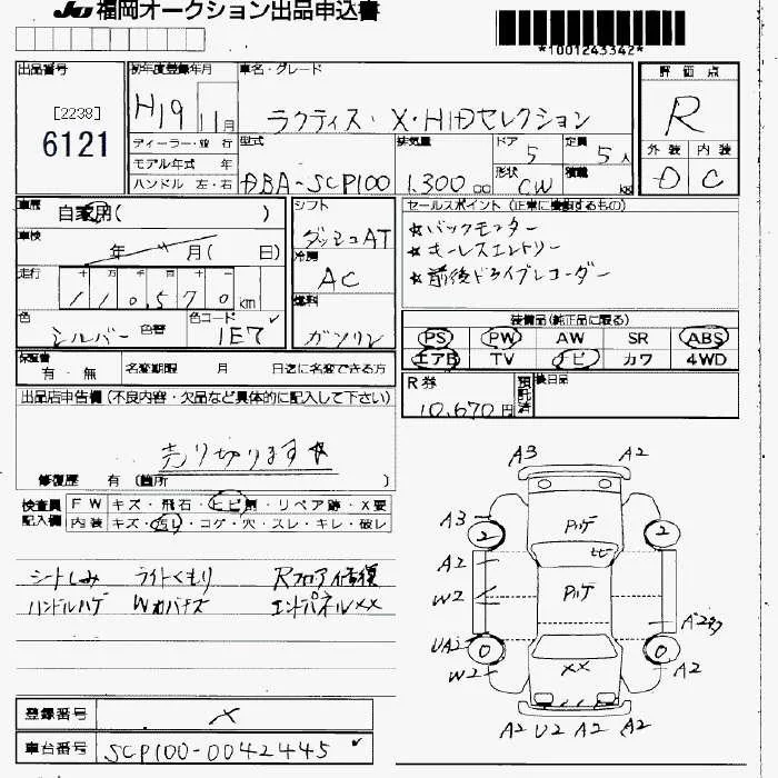 Toyota RACTIS с аукциона Японии JU Fukuoka лот № 6121