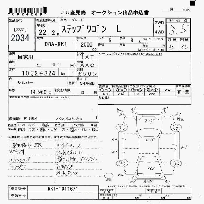 Honda STEP WAGON с аукциона Японии JU Fukuoka лот № 2034