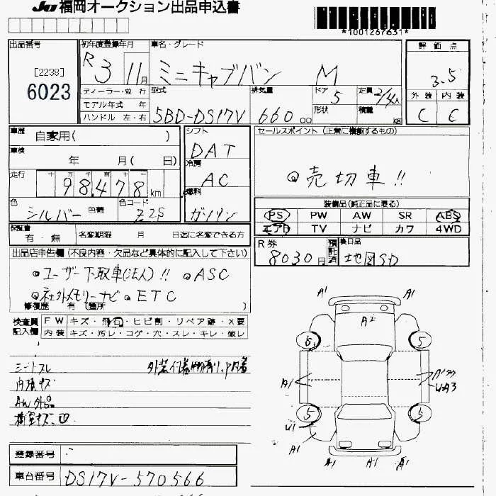 Mitsubishi MINICAB VAN с аукциона Японии JU Fukuoka лот № 6023