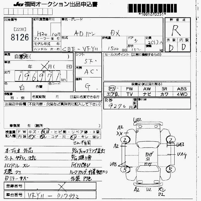 Nissan AD с аукциона Японии JU Fukuoka лот № 8126