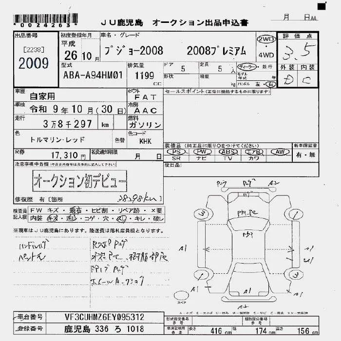 Peugeot 2008 с аукциона Японии JU Fukuoka лот № 2009