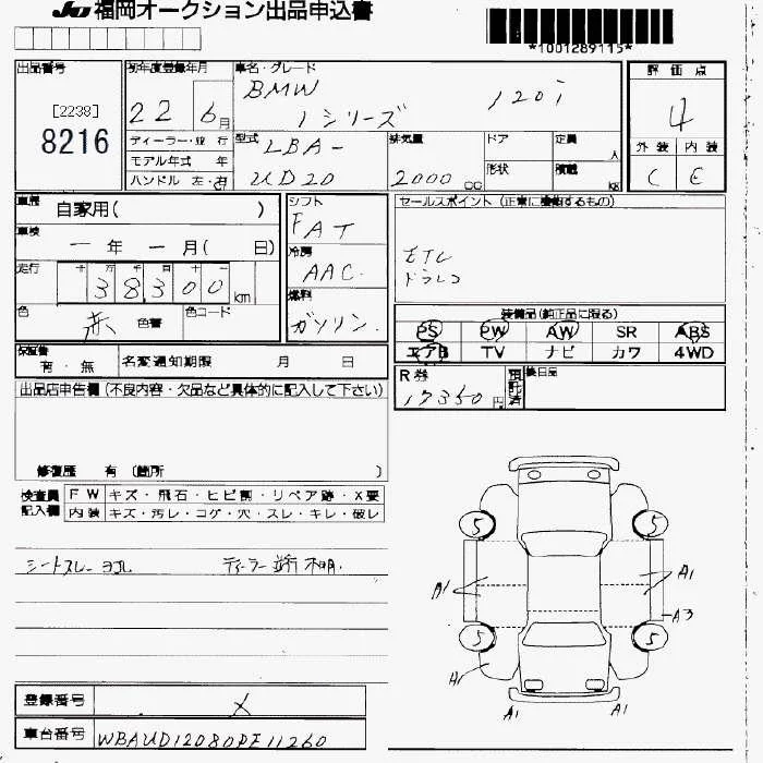 BMW 1-Series с аукциона Японии JU Fukuoka лот № 8216