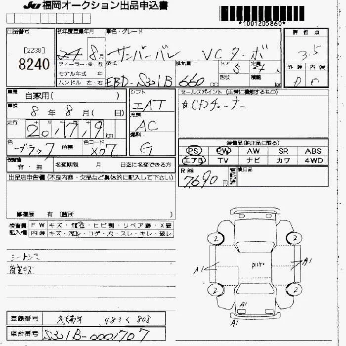 Subaru SAMBAR с аукциона Японии JU Fukuoka лот № 8240