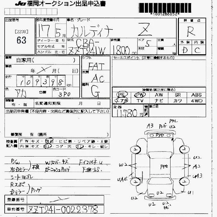 Toyota CALDINA с аукциона Японии JU Fukuoka лот № 63