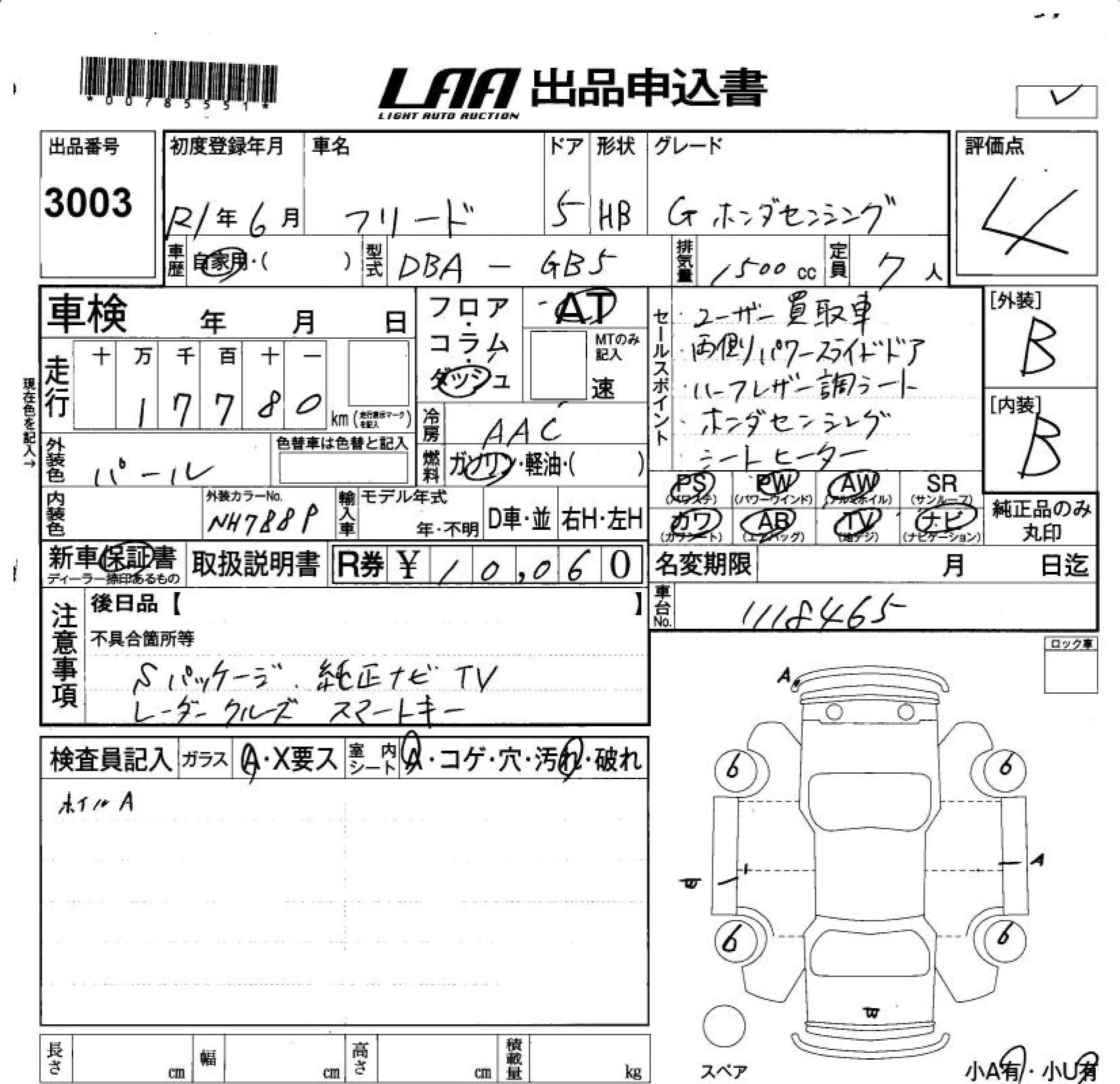 Honda FREED с аукциона Японии LAA Okayama лот № 3003