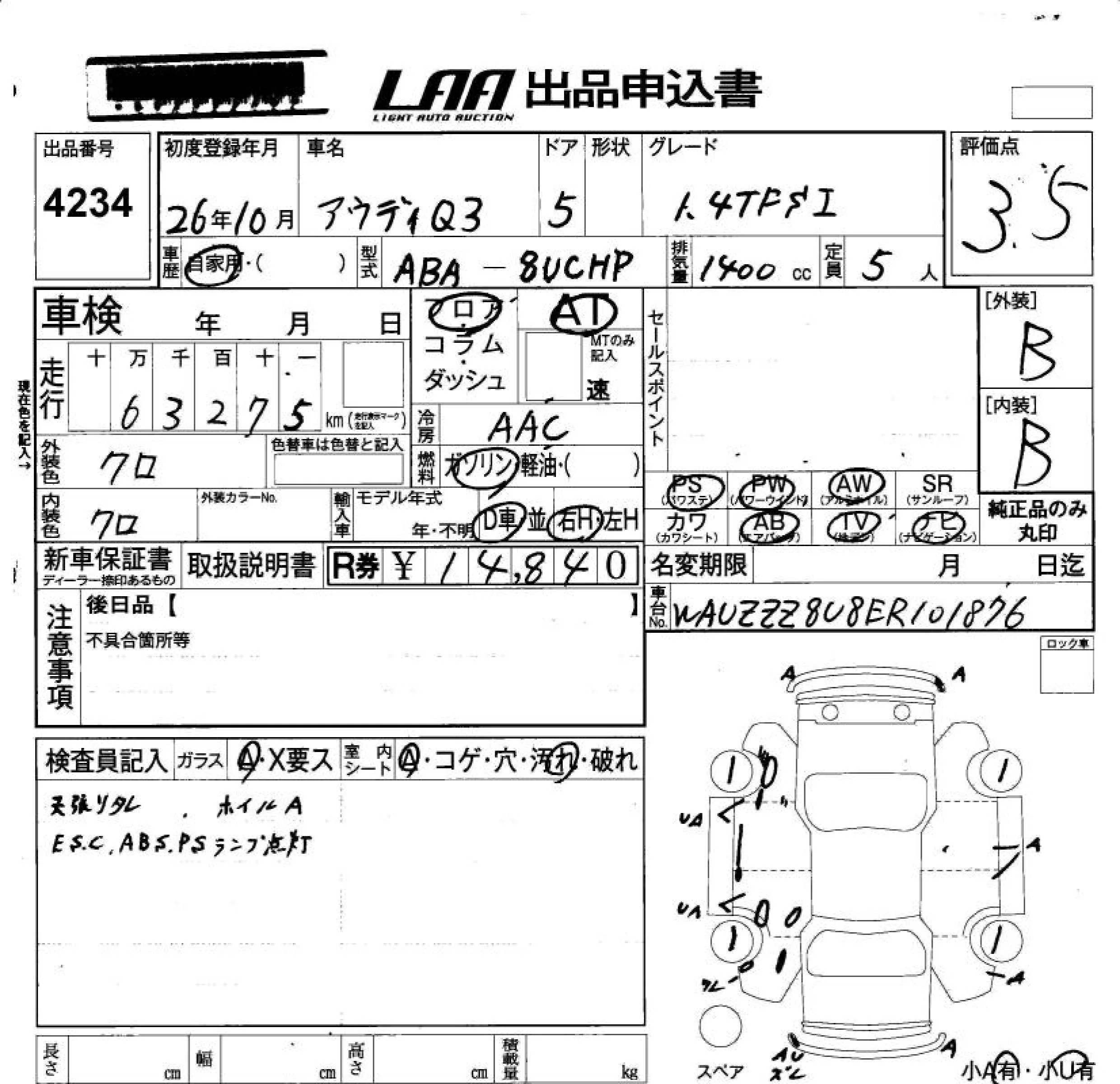 Audi Q3 с аукциона Японии LAA Okayama лот № 4234