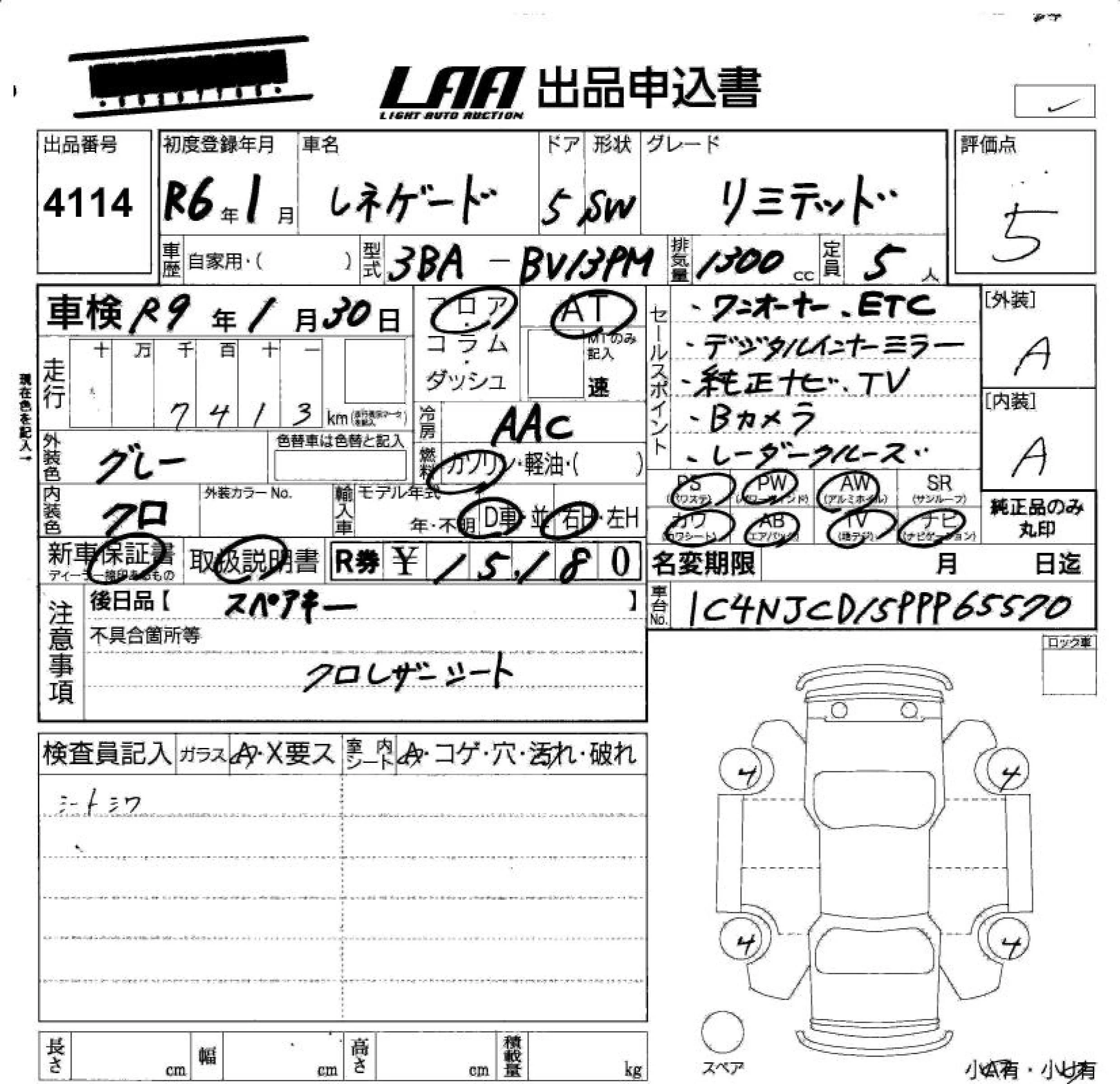 Chrysler JEEP RENEGADE с аукциона Японии LAA Okayama лот № 4114