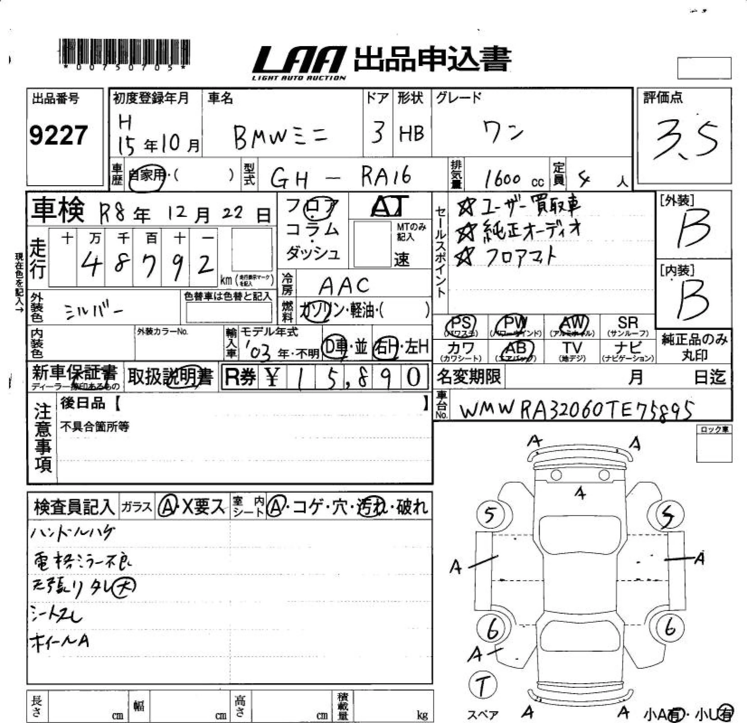 BMW MINI с аукциона Японии LAA Okayama лот № 9227