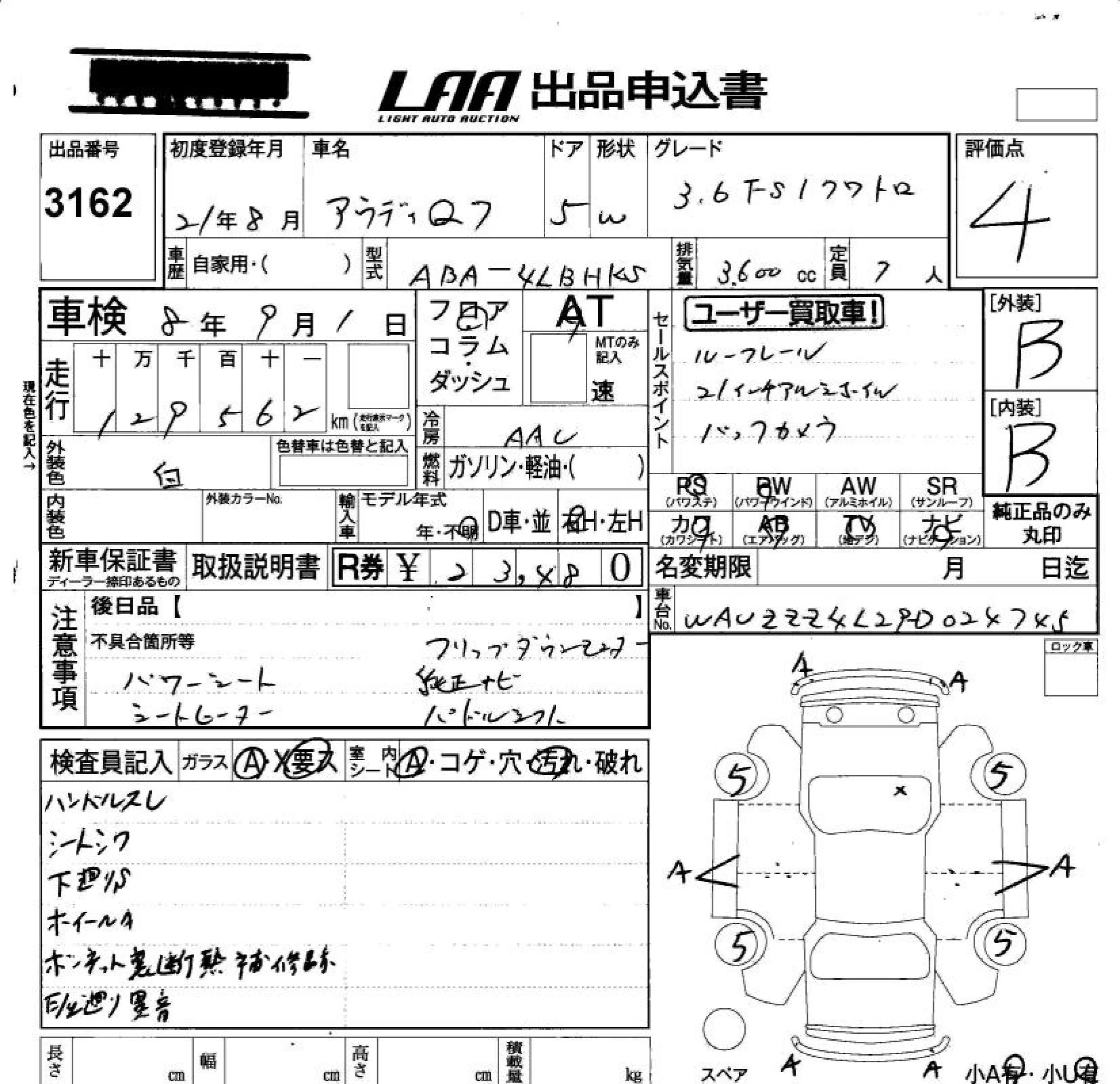 Audi Q7 с аукциона Японии LAA Okayama лот № 3162