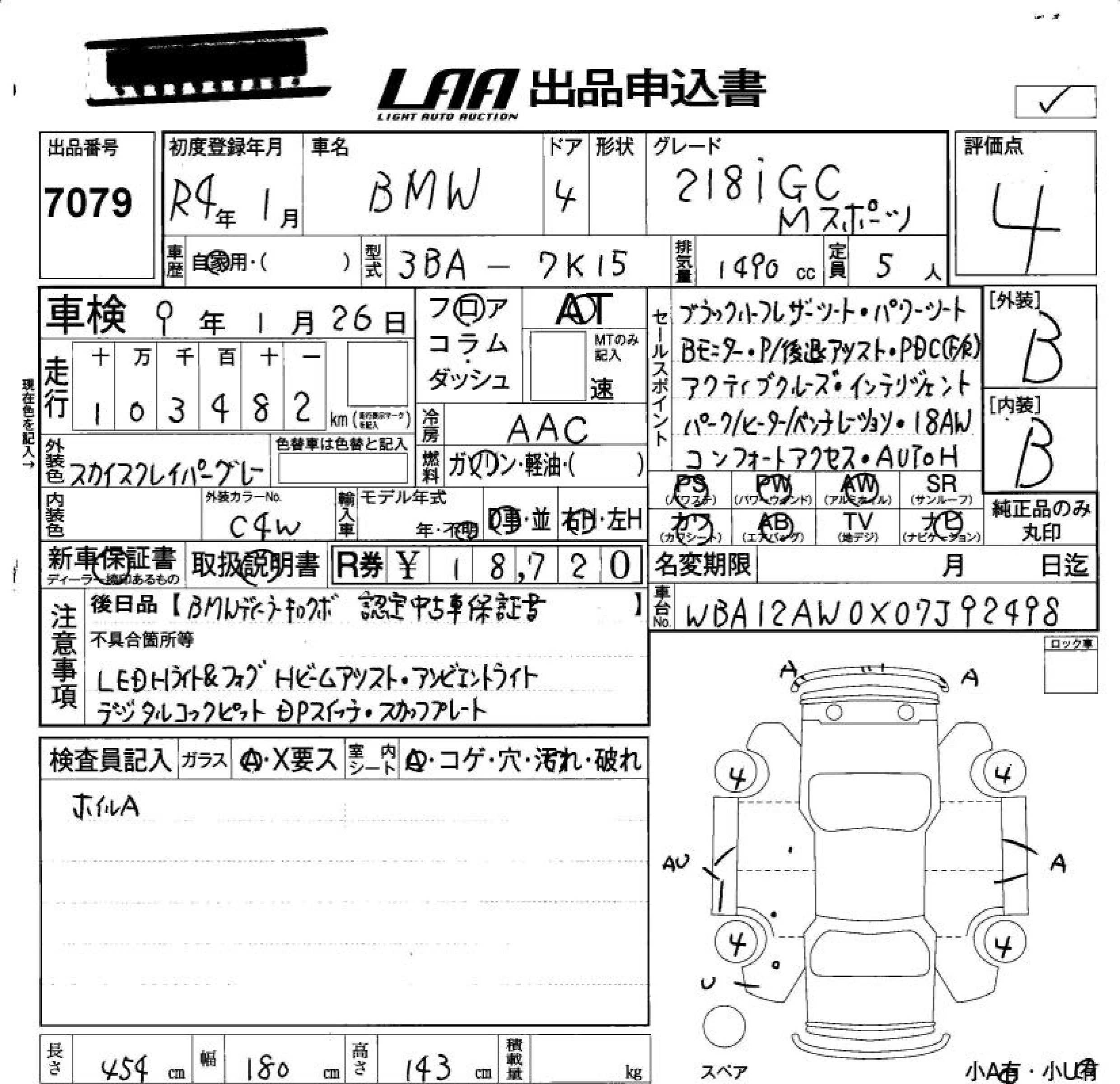 BMW 2-Series с аукциона Японии LAA Okayama лот № 7079