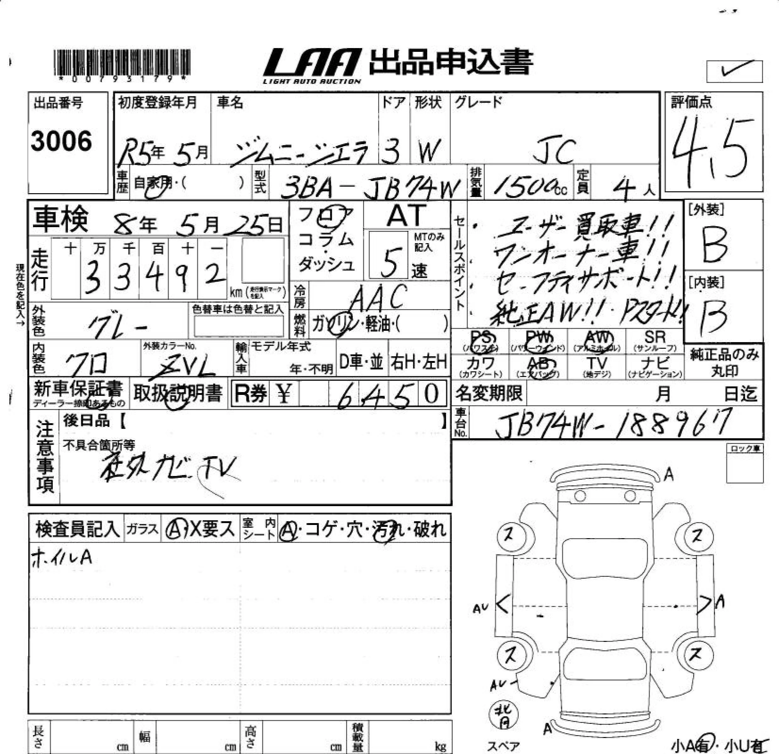 Suzuki JIMNY SIERRA с аукциона Японии LAA Okayama лот № 3006