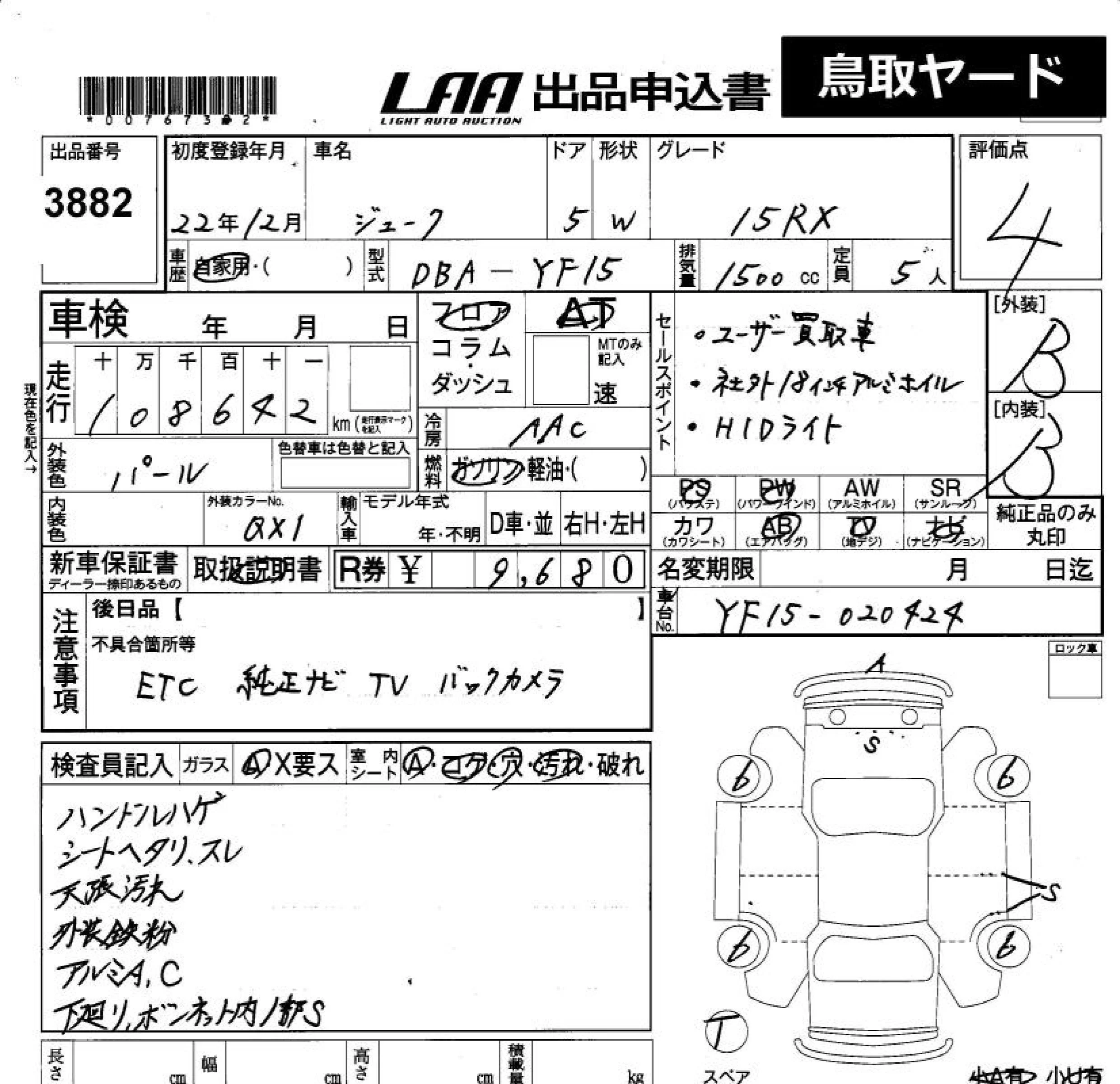 Nissan JUKE с аукциона Японии LAA Okayama лот № 3882
