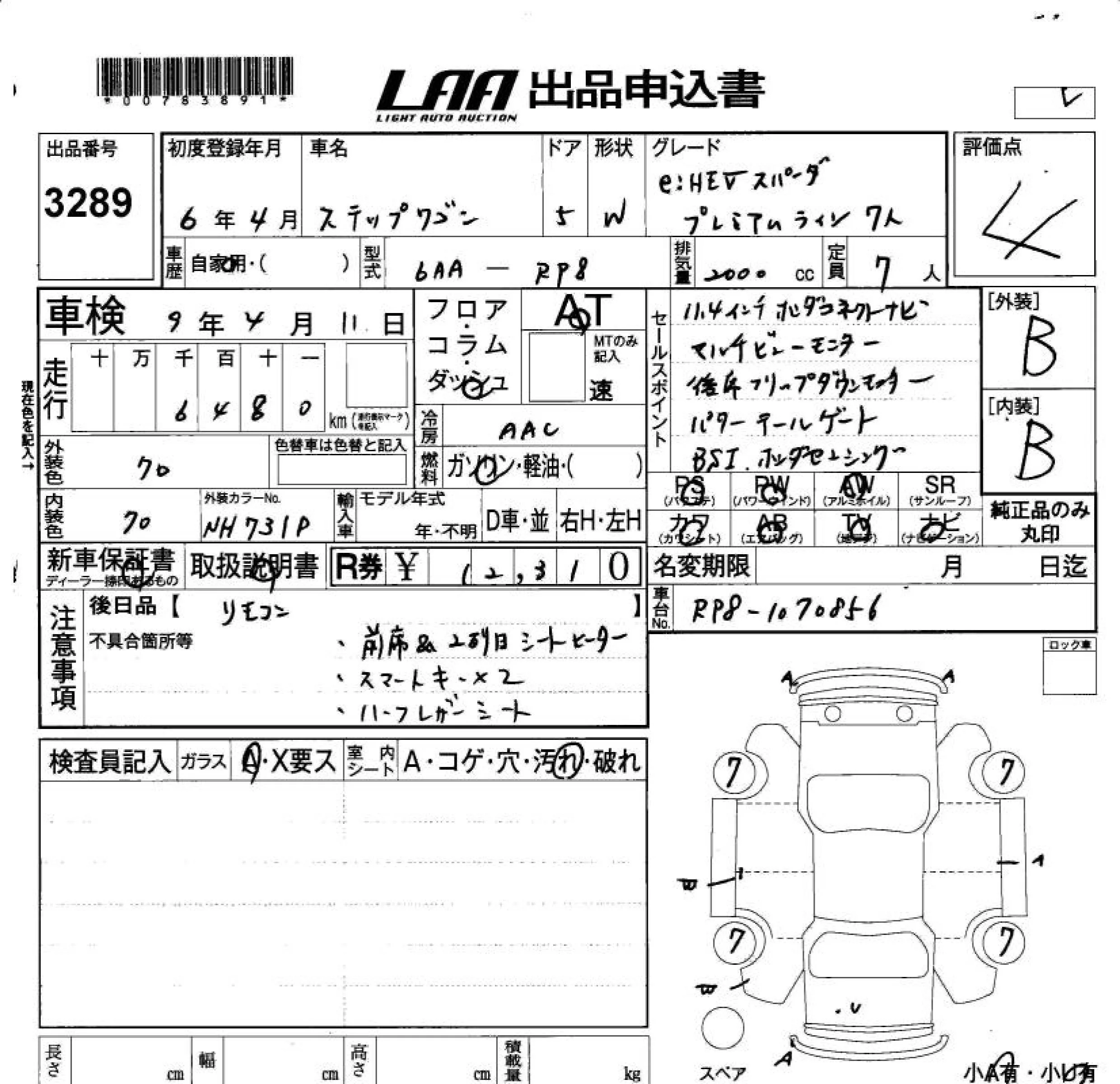 Honda STEP WAGON с аукциона Японии LAA Okayama лот № 3289