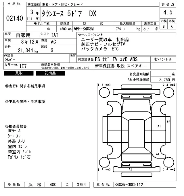 Toyota TOWN ACE VAN с аукциона Японии ARAI Bayside лот № 2140